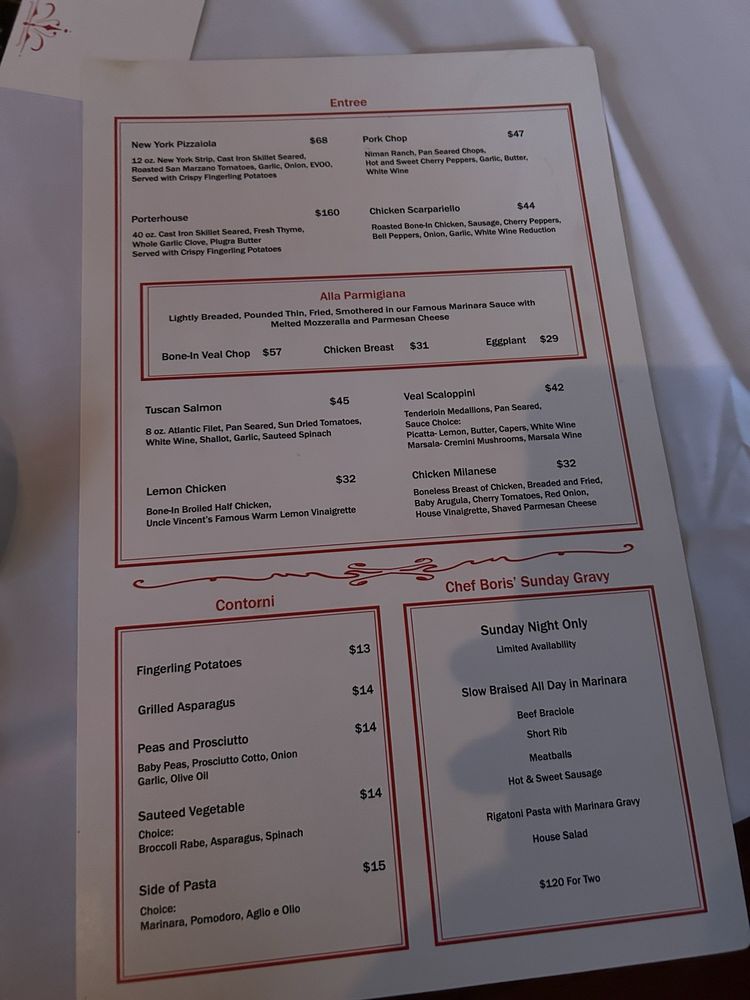 Sauteed vegetables, choice of broccoli rabe, spinach, or asparagus.